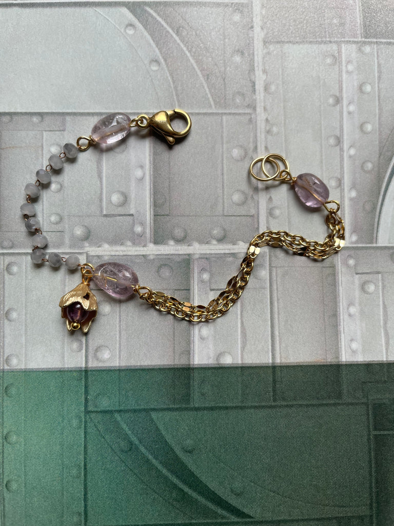 Bracciale con alternanza di catenine e pietre diverse: ci sono rosarietti, catenine a spina di pesce smaltate, piccoli fiorellini dorati…. Ognuno è diverso e ognuno con le sue particolarità. Lunghezza circa 17-18 cm.