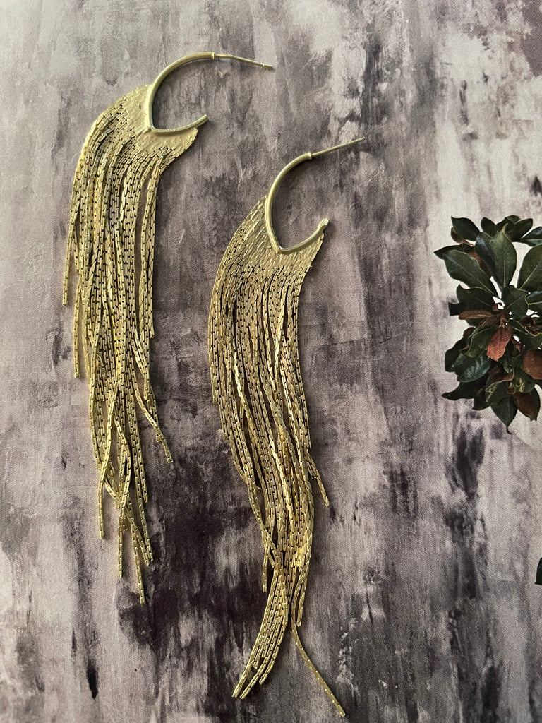 Orecchini Frangia Dorata lunga