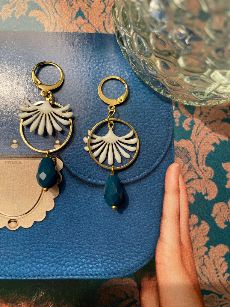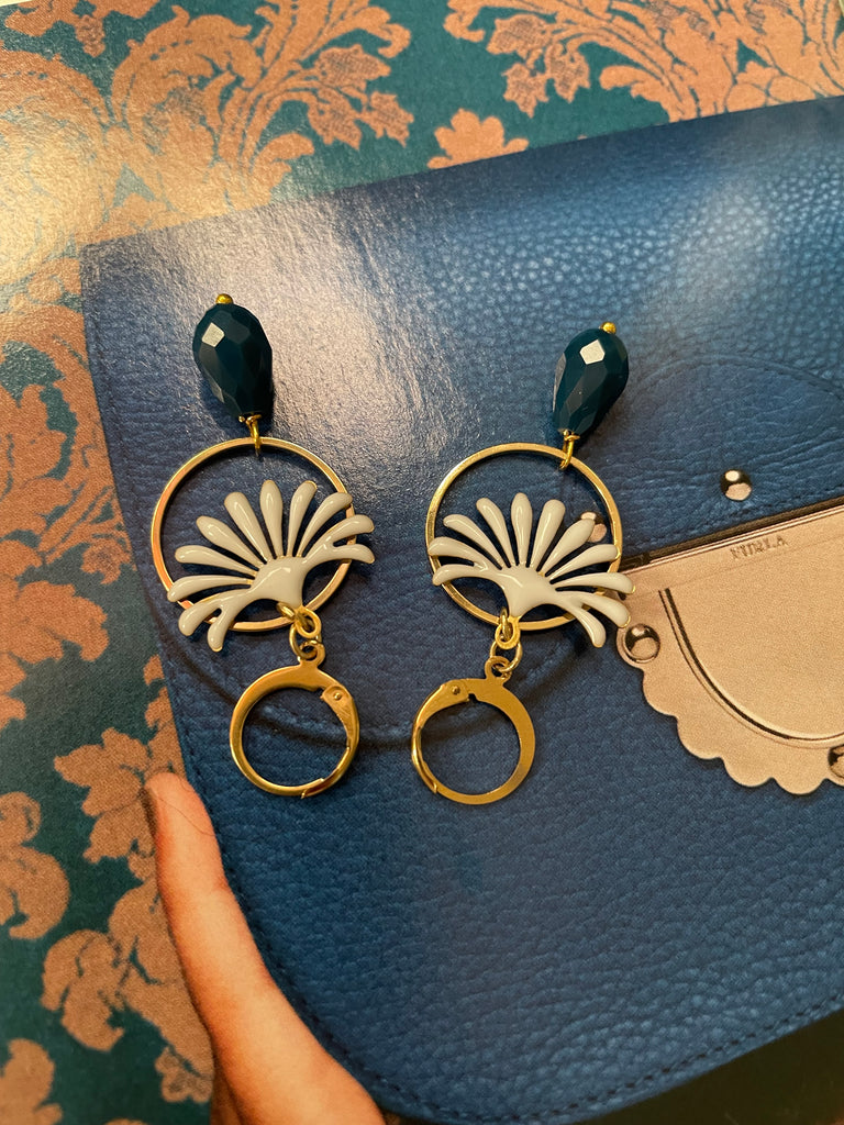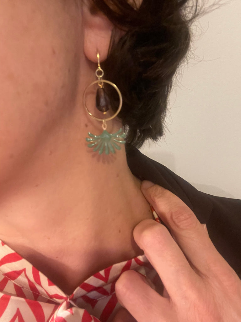 Orecchini goccia in vetro, cerchio e fontanella