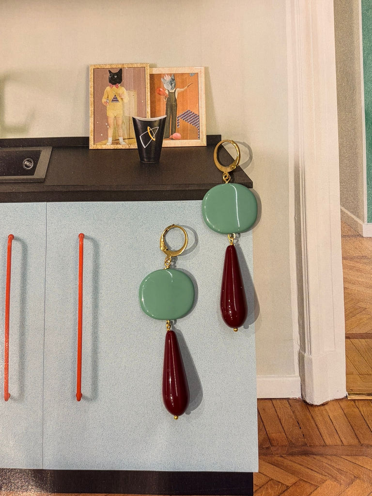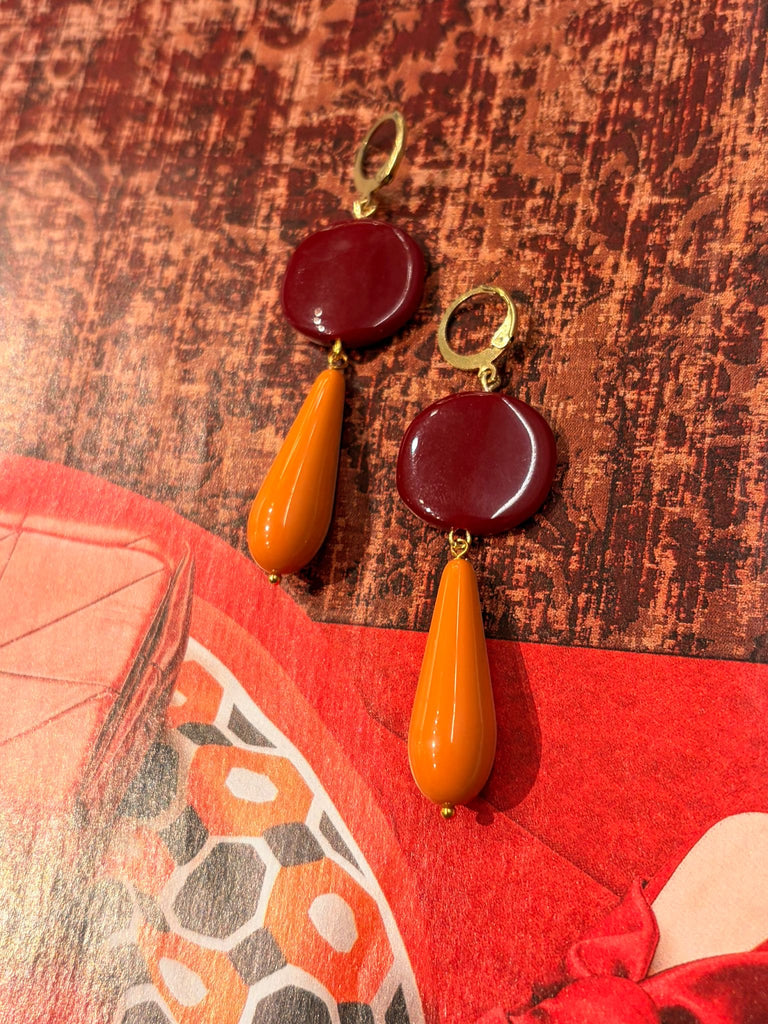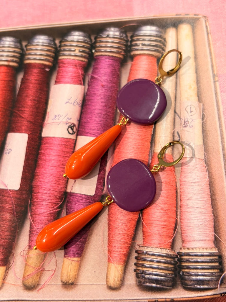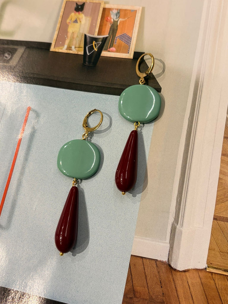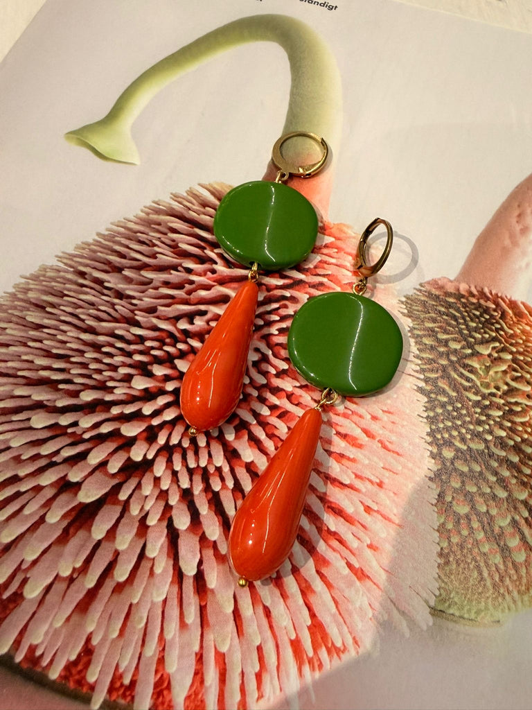 Fratelli minori degli orecchini Penelope, sono totalmente in resina, leggerissimi, ma molto colorati. Uniscono la forma classica della goccia a una forma più moderna di piastra piatta, creando dei bellissimi accostamenti cromatici. Misurano circa 7 cm e sono rigorosamente anallergici. Sbizzarritevi con i colori!