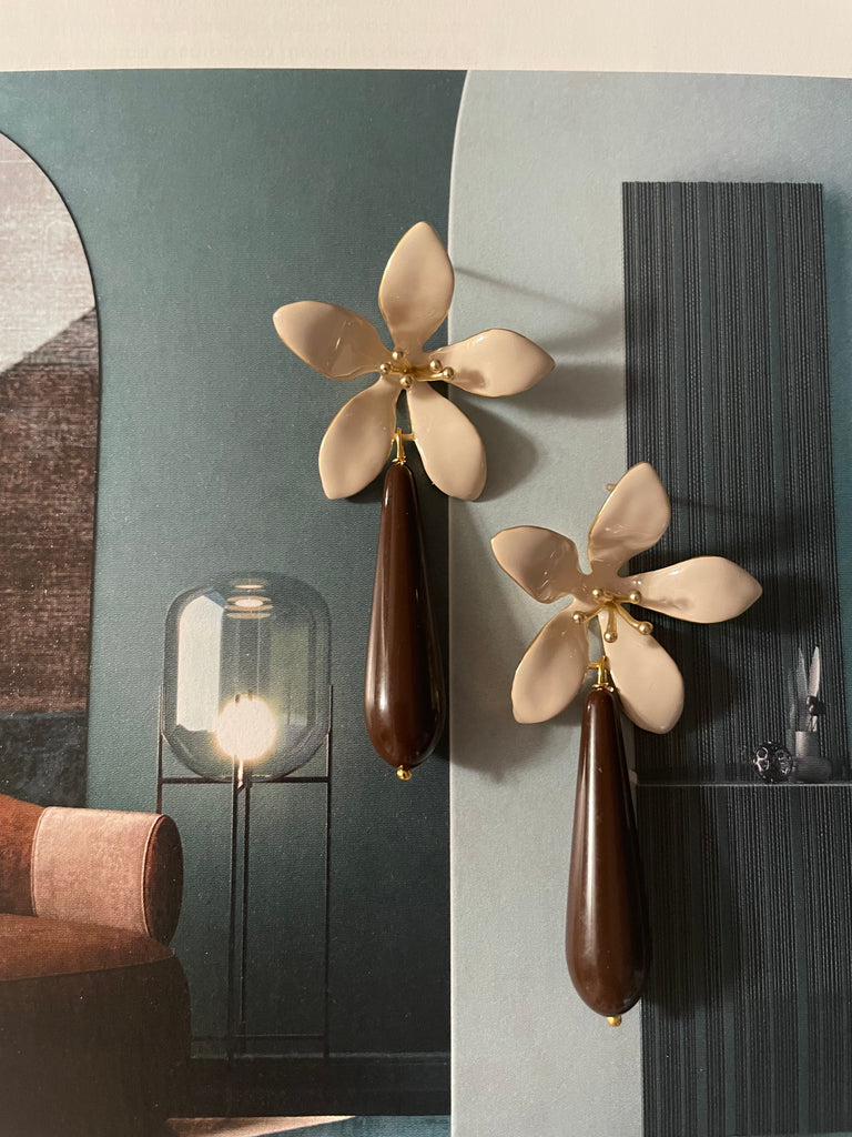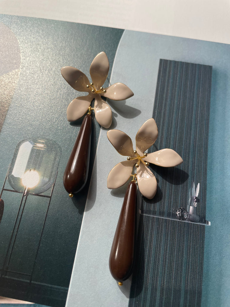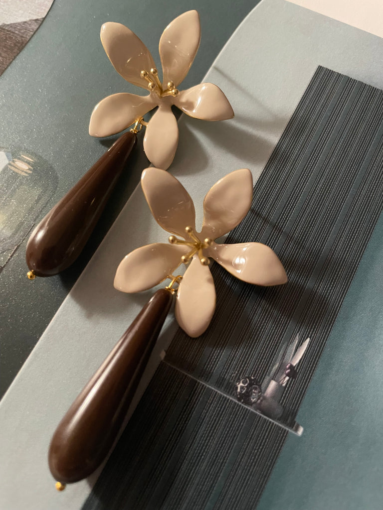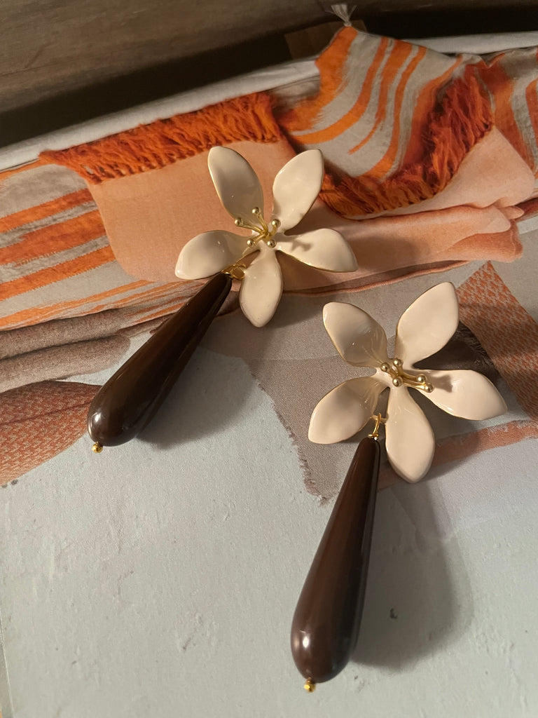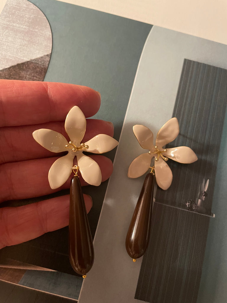 Orecchini grandi giglio avorio e goccia